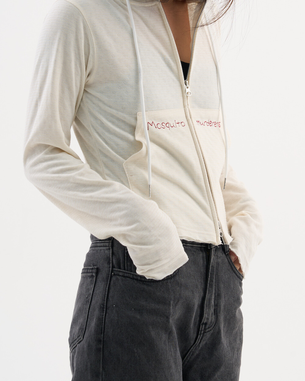 Mosquito murderers CROP HOODIE JACKET (White)
